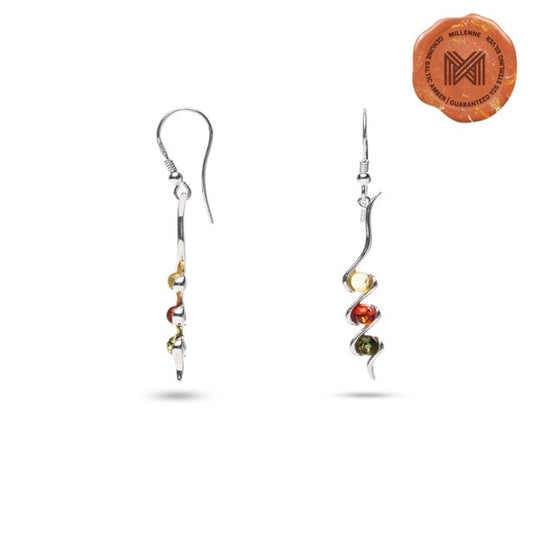 MILLENNE Multifaceted Baltic Amber Multi Stones Silver Dangle Earrings with 925 Sterling Silver