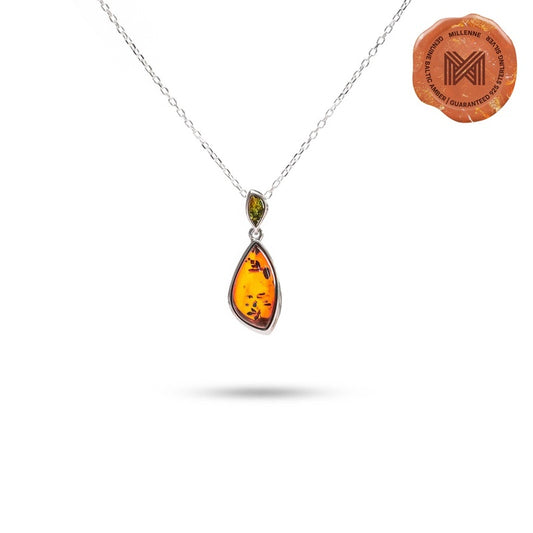 MILLENNE Multifaceted Baltic Amber Tear Drop Silver Pendant with 925 Sterling Silver