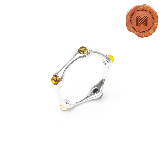 MILLENNE Multifaceted Baltic Amber Multi-Tone Eternity Silver Ring with 925 Sterling Silver