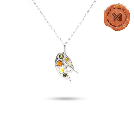 MILLENNE Multifaceted Baltic Amber Artist Pallette Silver Pendant with 925 Sterling Silver