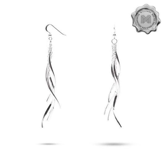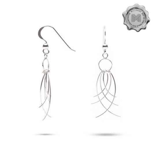 MILLENNE Millennia 2000 Ribbon Bunch Hook Silver Dangle Earrings with 925 Sterling Silver