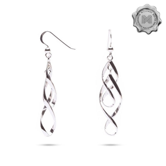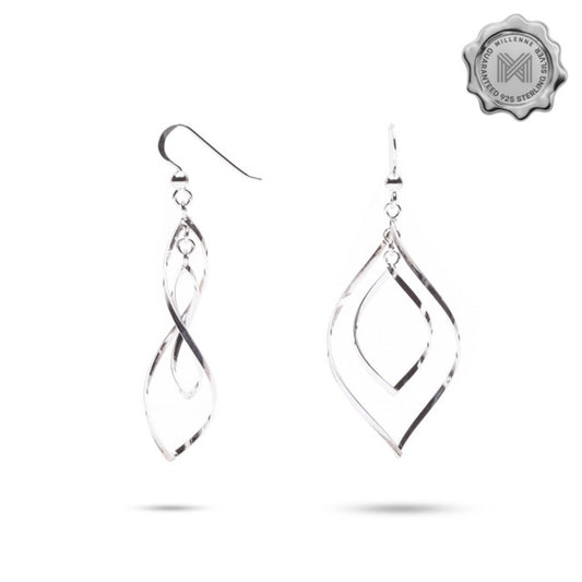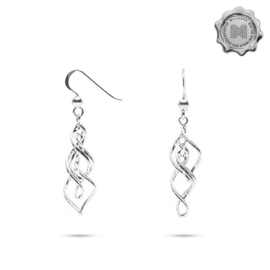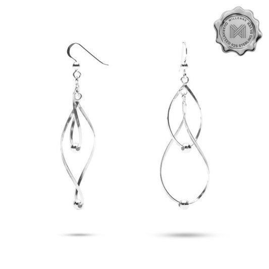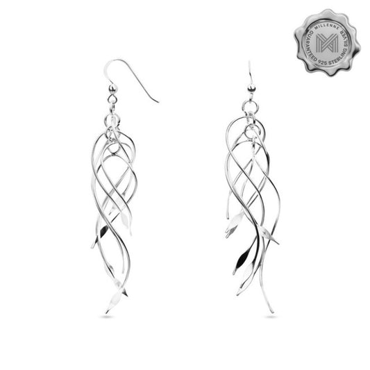 MILLENNE Millennia 2000 Swirl Hook Silver Dangle Earrings with 925 Sterling Silver
