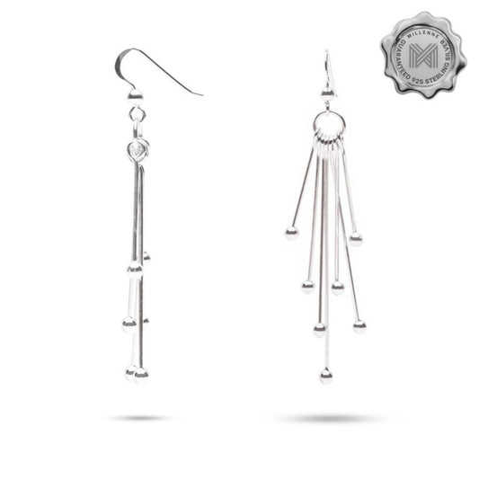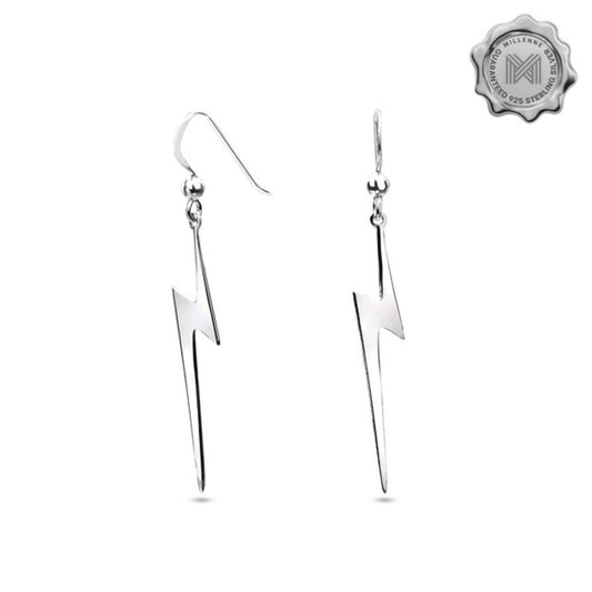 MILLENNE Millennia 2000 Lightning Hook Silver Dangle Earrings with 925 Sterling Silver