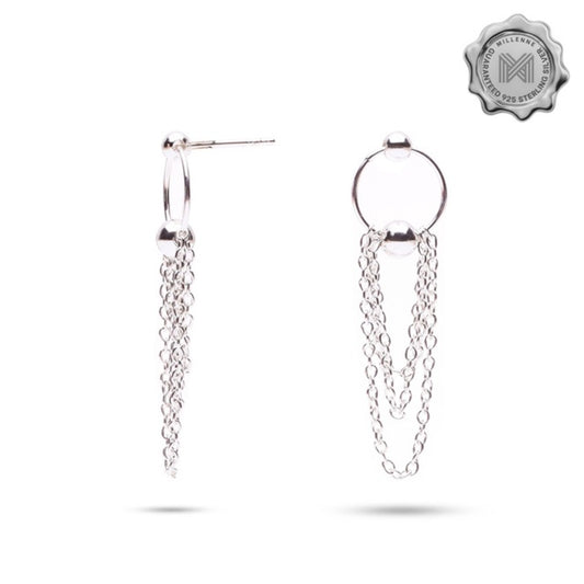 MILLENNE Millennia 2000 Circle and Bar Hook Silver Dangle Earrings with 925 Sterling Silver