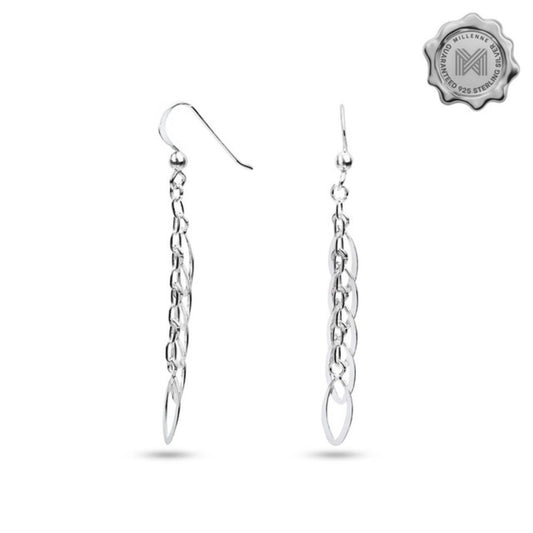 MILLENNE Millennia 2000 Hook Oval Links Hook Silver Dangle Earrings with 925 Sterling Silver