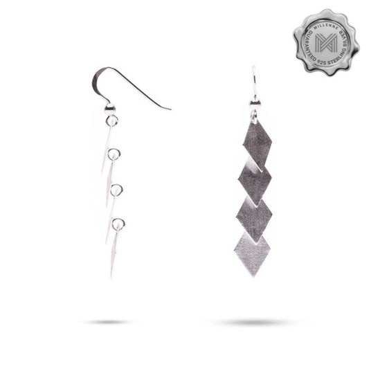 MILLENNE Millennia 2000 Matt Rhombus Hook Silver Dangle Earrings with 925 Sterling Silver