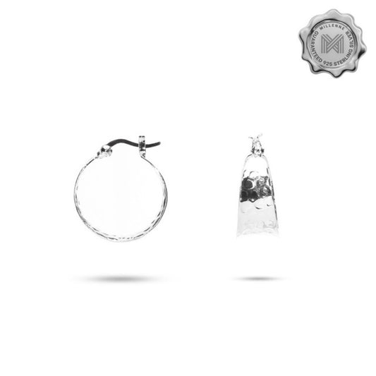 MILLENNE Minimal Hammered Concaved Silver Hoop Earrings with 925 Sterling Silver