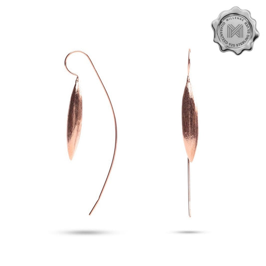 MILLENNE Minimal Brushed Marquise Curve Rose Gold Threader Earrings with 925 Sterling Silver