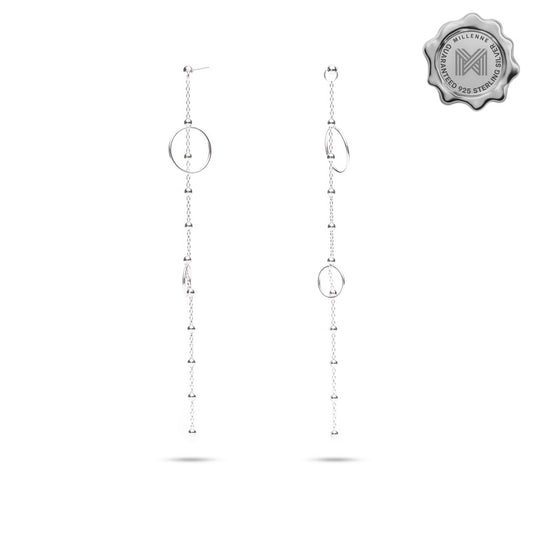 MILLENNE Minimal Satellite Halo Silver Chain Stud Earrings with 925 Sterling Silver