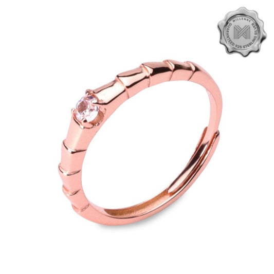 MILLENNE Minimal Asymmetrical Rose Gold Adjustable Ring with 925 Sterling Silver