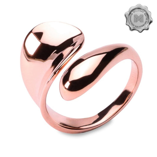 MILLENNE Minimal Organic Form Rose Gold Adjustable Ring with 925 Sterling Silver
