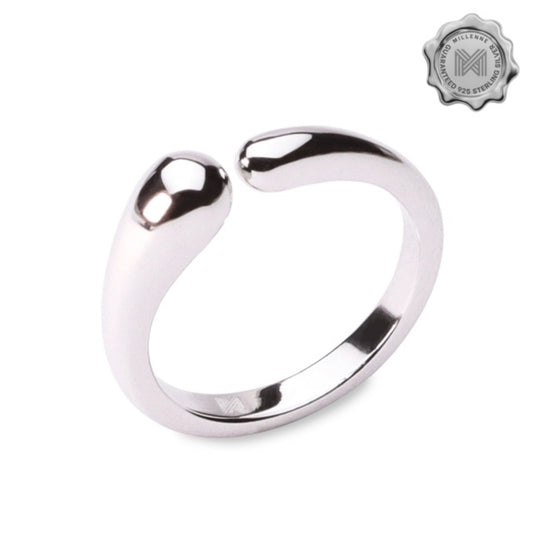 MILLENNE Minimal Globule White Gold Adjustable Ring with 925 Sterling Silver
