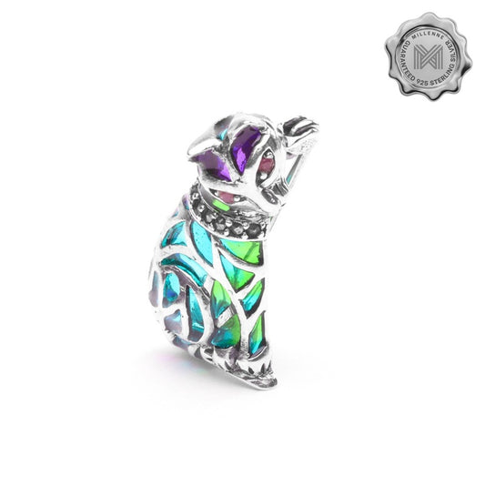 MILLENNE Multifaceted Abalone Shell Cat White Gold Brooch with 925 Sterling Silver