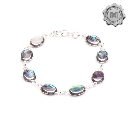 MILLENNE Multifaceted Abalone Shell Silver Charm Bracelet with 925 Sterling Silver