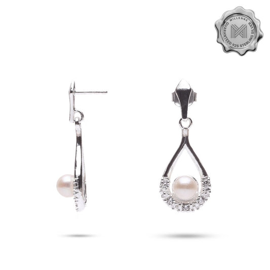MILLENNE Made For The Night Freshwater Pearls in Droplet Cubic Zirconia Silver Teardrop Earrings with 925 Sterling Silver