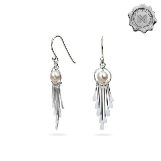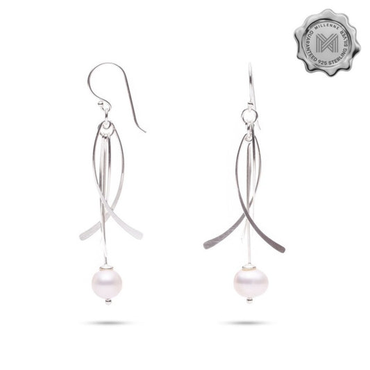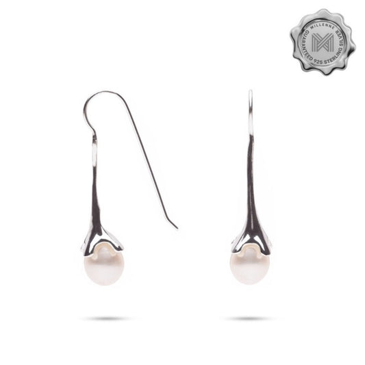 MILLENNE Millennia 2000 Freshwater Pearls Silver Hook Silver Dangle Earrings with 925 Sterling Silver