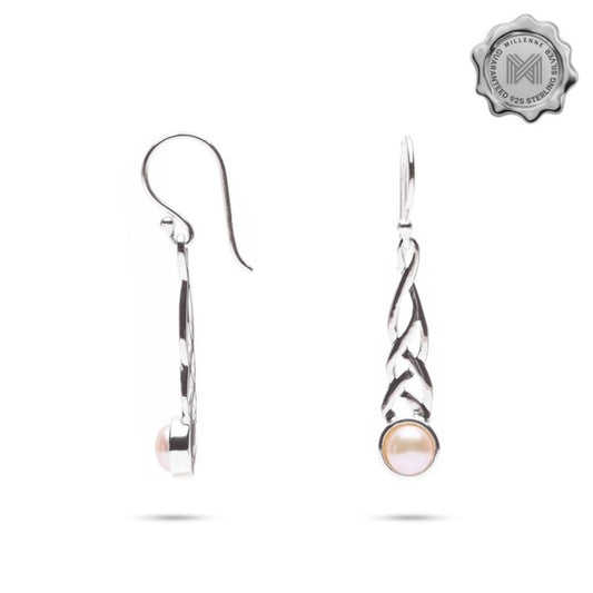 MILLENNE Millennia 2000 Freshwater Pearls Celtic Hook Silver Dangle Earrings with 925 Sterling Silver