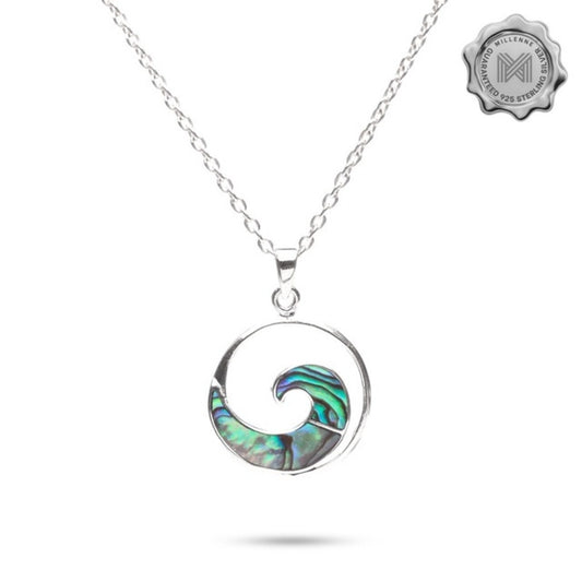 MILLENNE Multifaceted Abalone Shell Ocean Wave White Gold Pendant with 925 Sterling Silver
