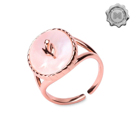 MILLENNE Millennia 2000 Mother of Pearls Victorian Bold Rose Gold Ring with 925 Sterling Silver