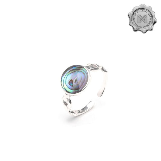 MILLENNE Multifaceted Abalone Shell Disc White Gold Ring with 925 Sterling Silver