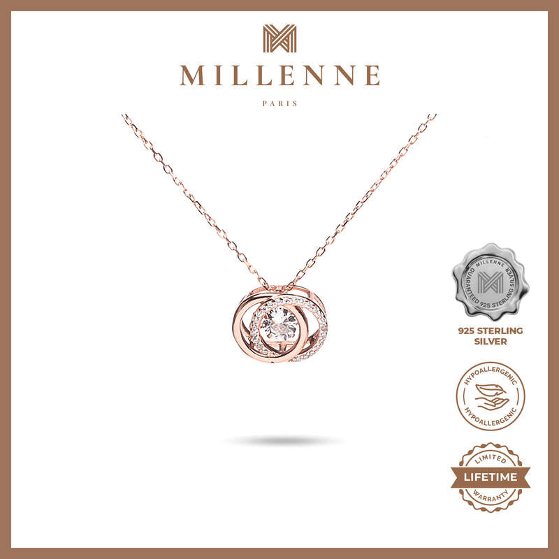 MILLENNE Made For The Night Circle Loop Studded Cubic Zirconia Rose Gold Necklace with 925 Sterling Silver