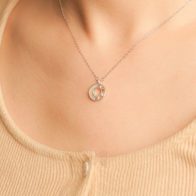MILLENNE Made For The Night Decorated Circle Cubic Zirconia Rhodium Necklace with 925 Sterling Silver
