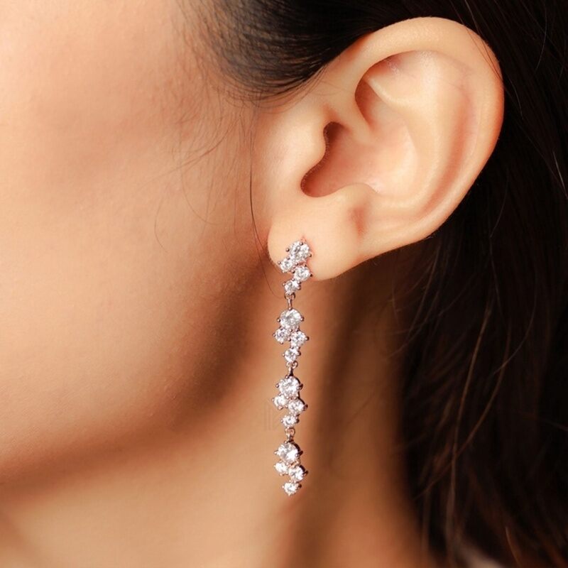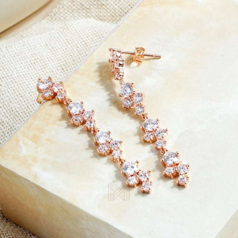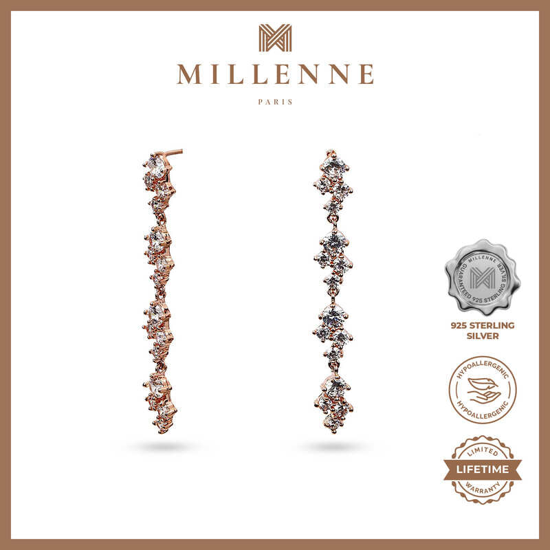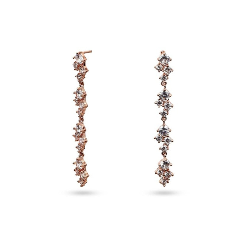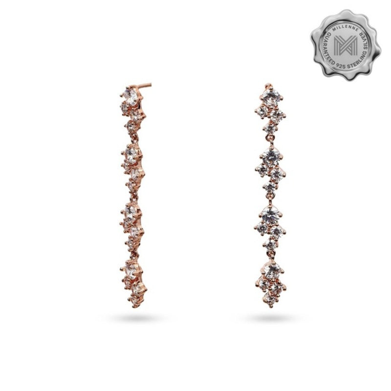 MILLENNE Made For The Night Diamond Triads Cubic Zirconia Rose Gold Drop Earrings with 925 Sterling Silver
