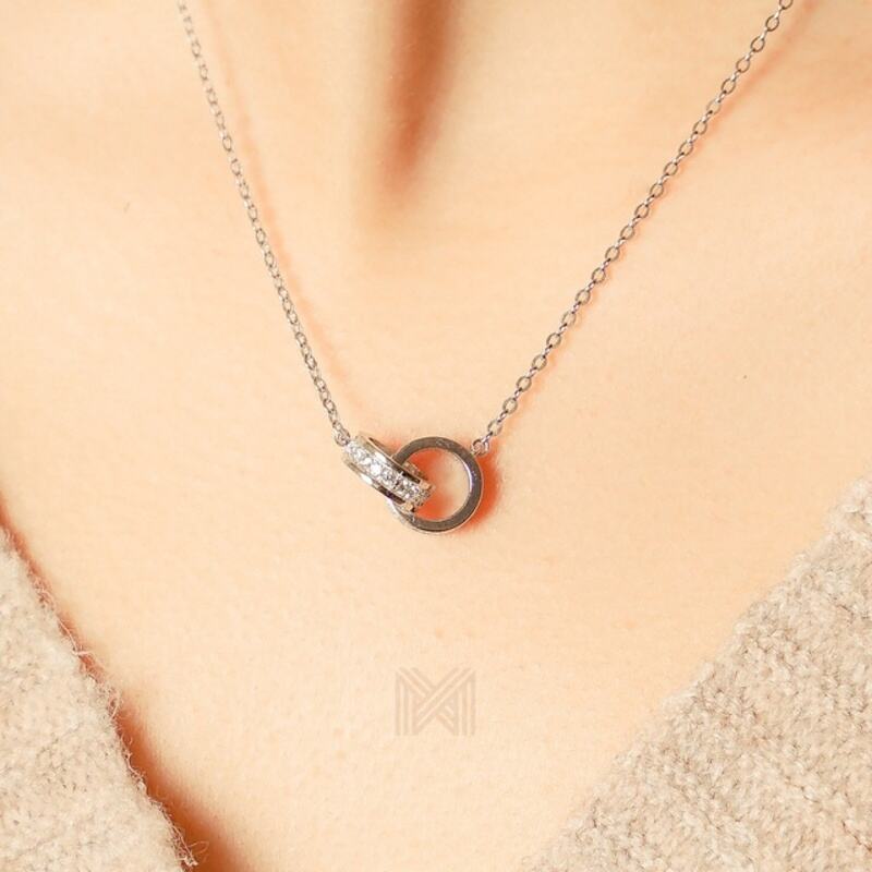 MILLENNE Made For The Night Interlinked Cubic Zirconia White Gold Necklace with 925 Sterling Silver