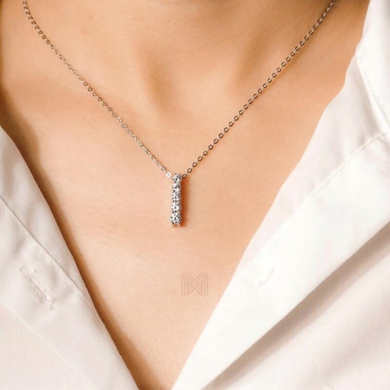 MILLENNE Made For The Night Quintuple Diamond Cubic Zirconia White Gold Necklace with 925 Sterling Silver