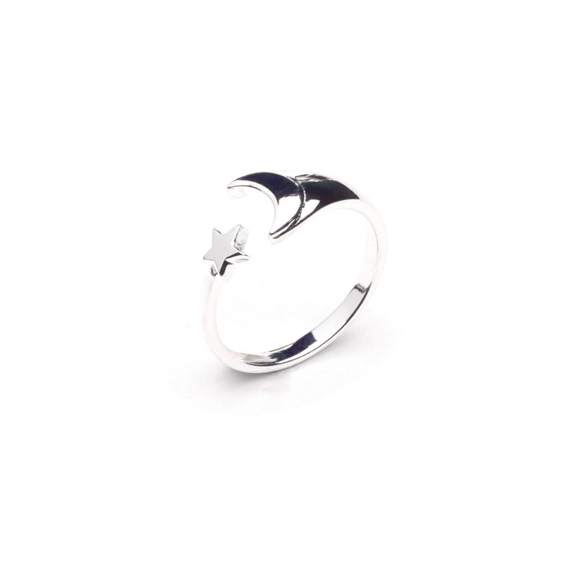 MILLENNE Match The Stars Cresent Moon and Star Silver Adjustable Ring with 925 Sterling Silver