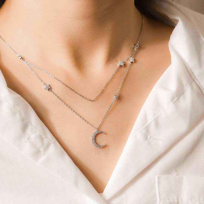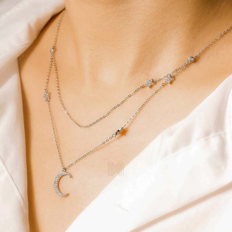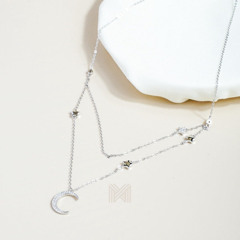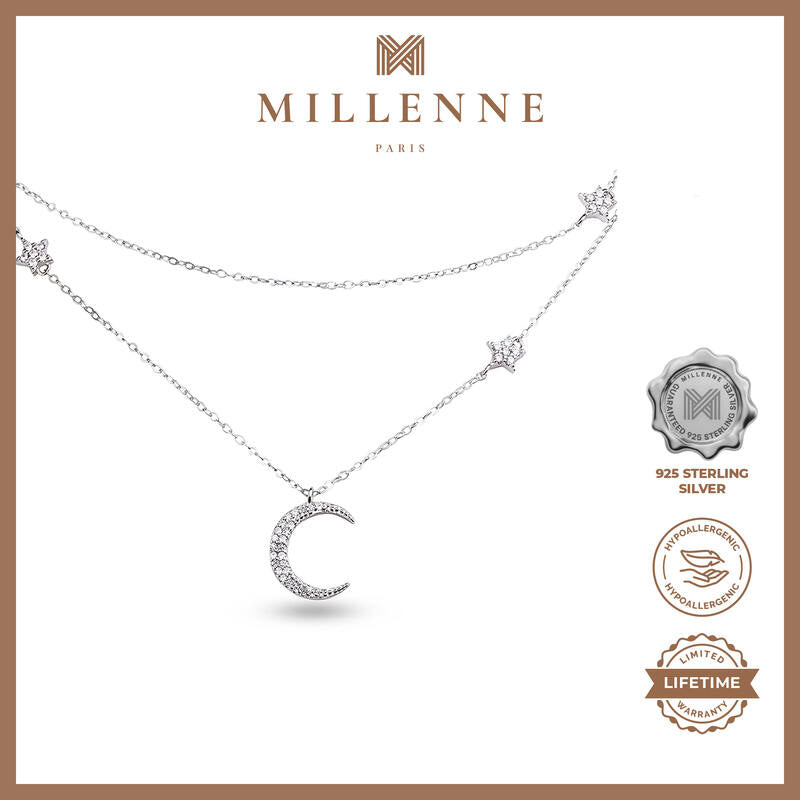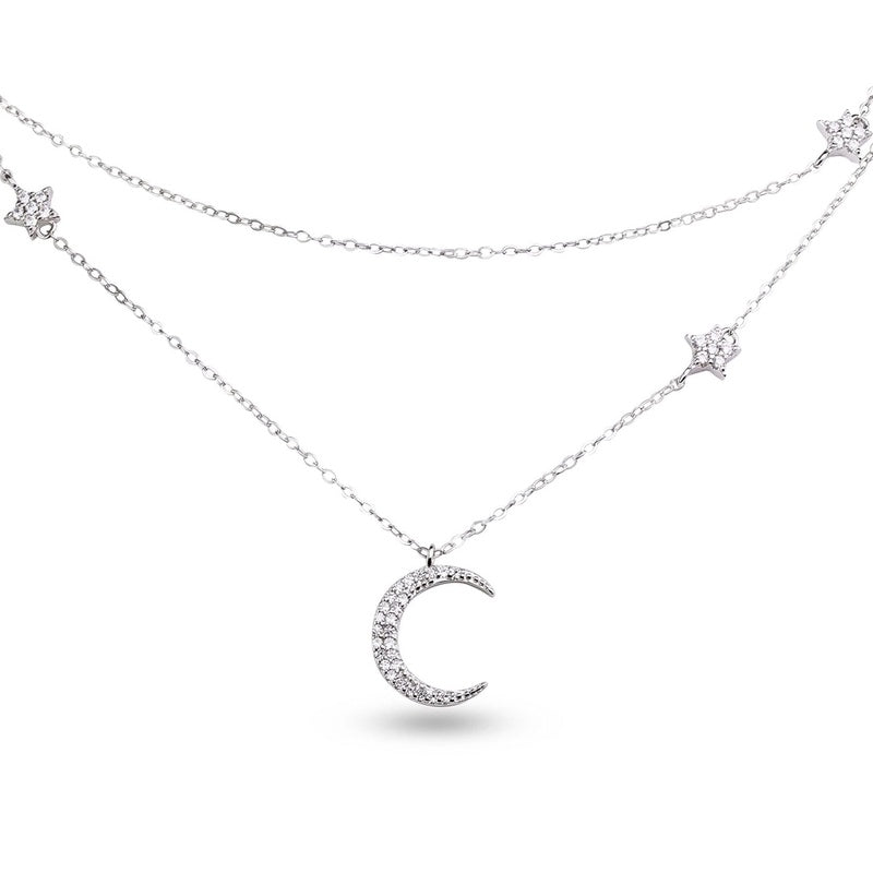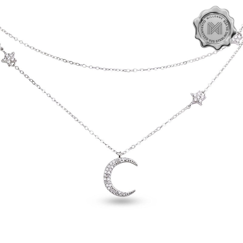 MILLENNE Match The Stars Moon and Stars Cubic Zirconia Rhodium Necklace with 925 Sterling Silver