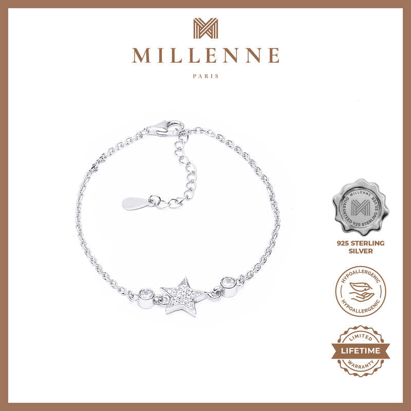 MILLENNE Match The Stars Star Studded Cubic Zirconia Silver Bracelet with 925 Sterling Silver