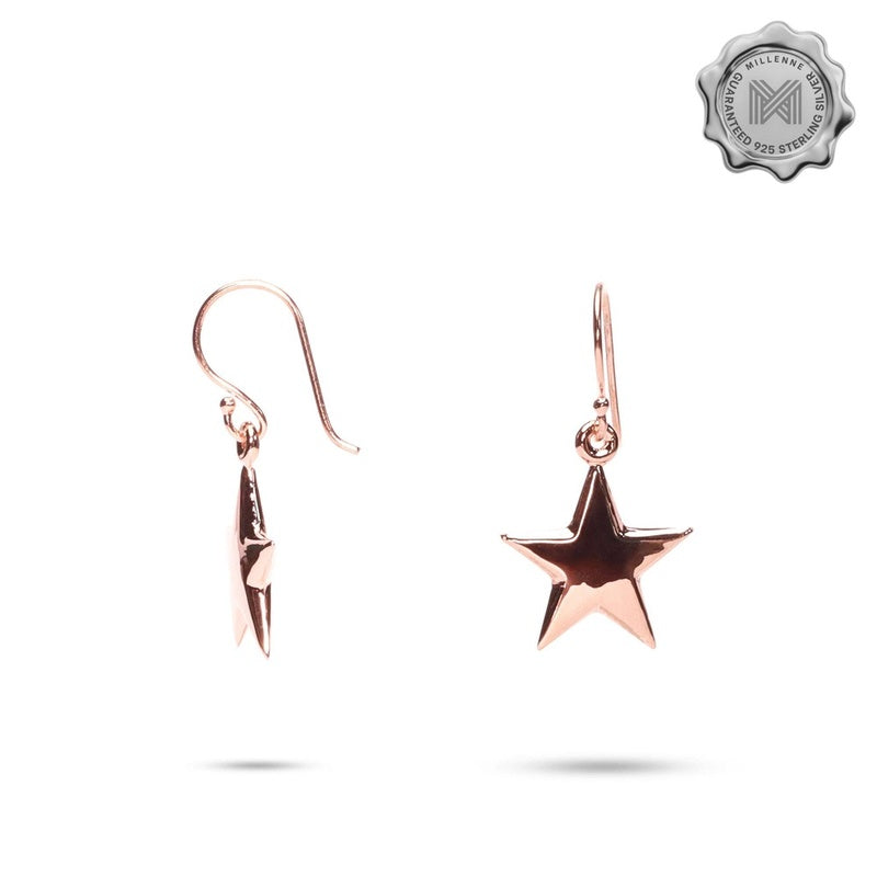 MILLENNE Match The Stars Twinkling Star Dangle Rose Gold Hook Earrings with 925 Sterling Silver