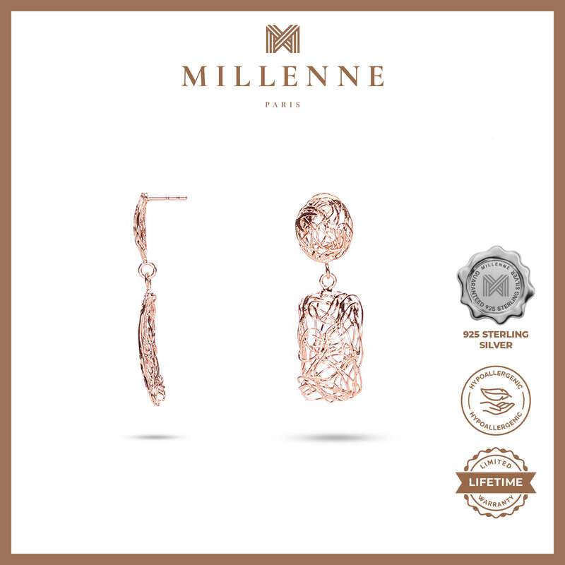 MILLENNE Millennia 2000 Dangling-Rectangle Stud Rose Gold Drop Earrings with 925 Sterling Silver
