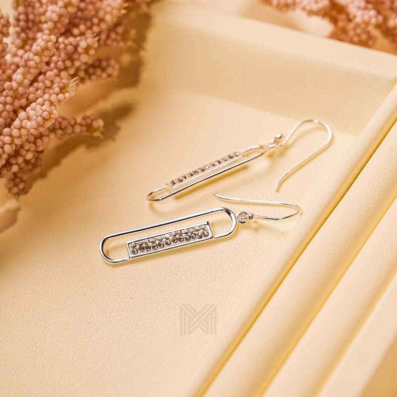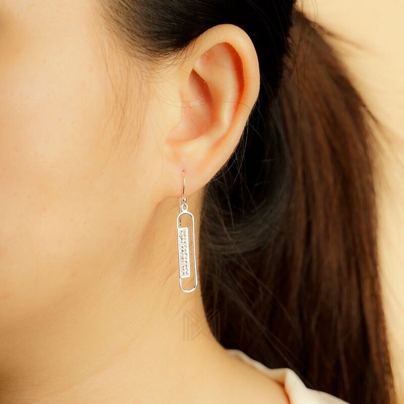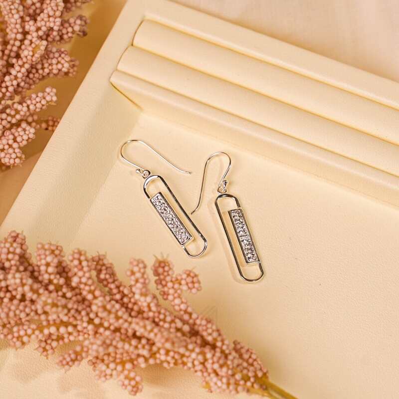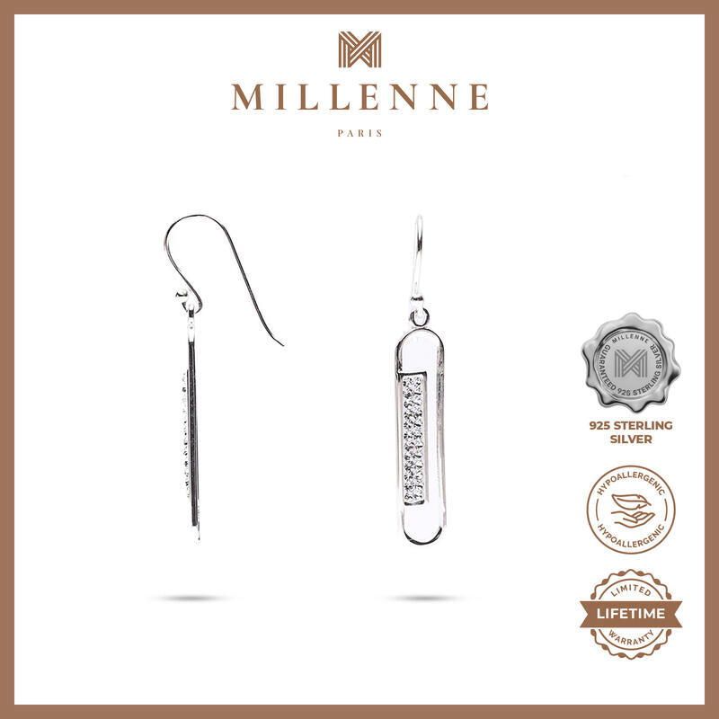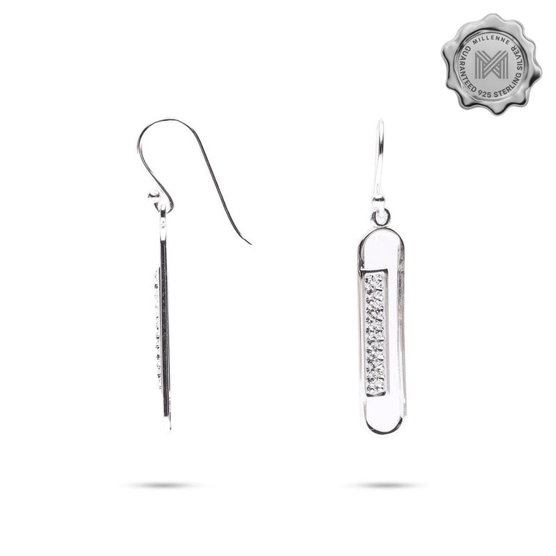 MILLENNE Millennia 2000 Double Elongated Oval Studded Cubic Zirconia White Gold Hook Earrings with 925 Sterling Silver