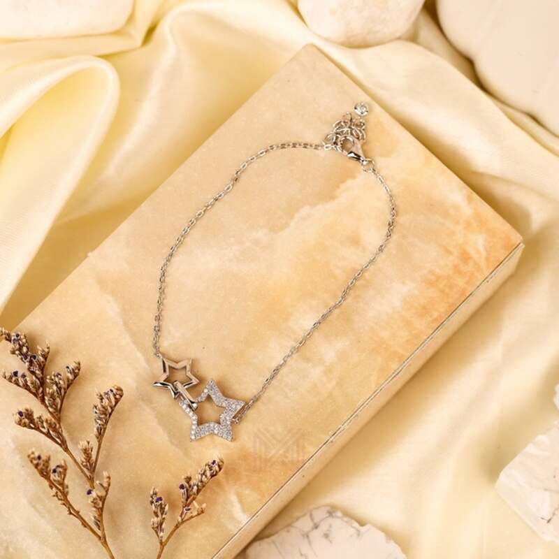 MILLENNE Millennia 2000 Dual Star Cubic Zirconia Silver Bracelet with 925 Sterling Silver
