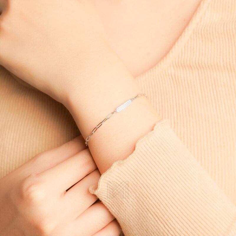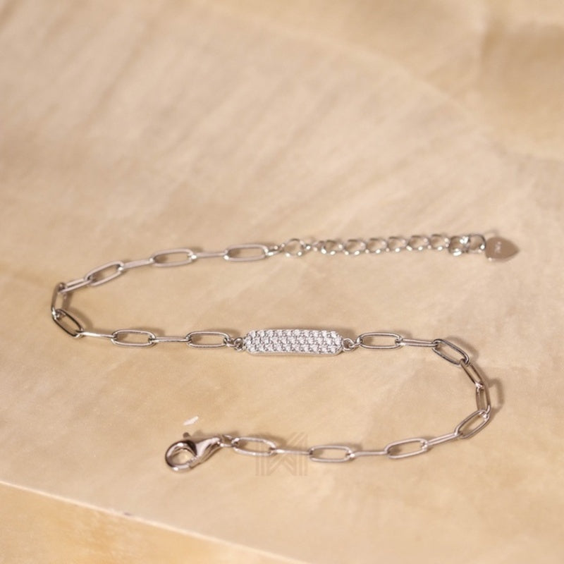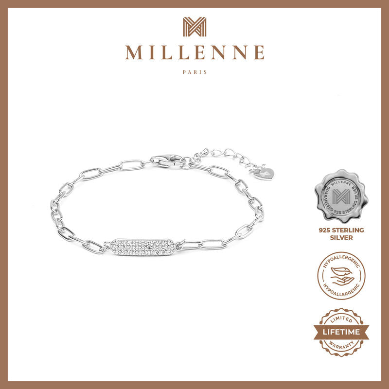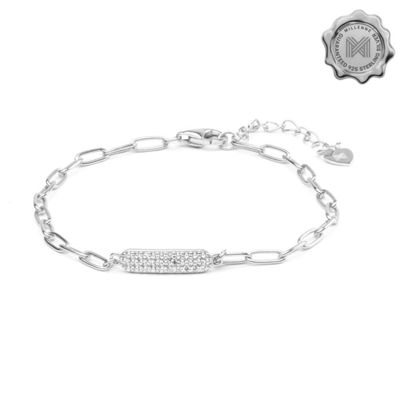 MILLENNE Millennia 2000 Embellished Chain Link Cubic Zirconia Rhodium Bracelet with 925 Sterling Silver
