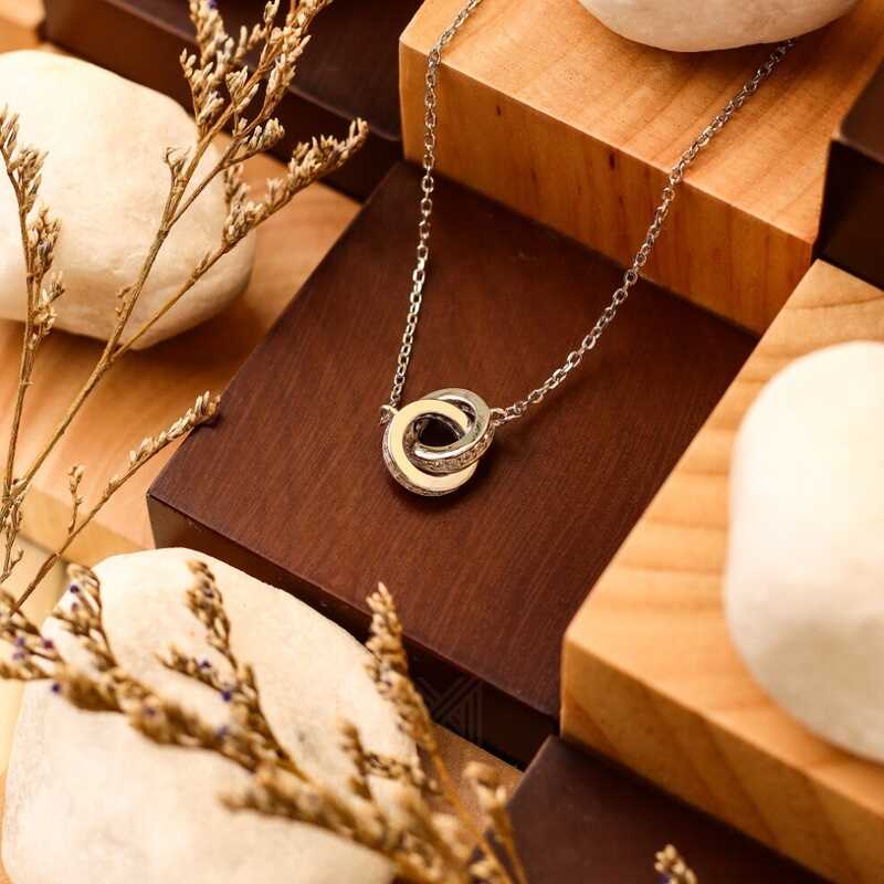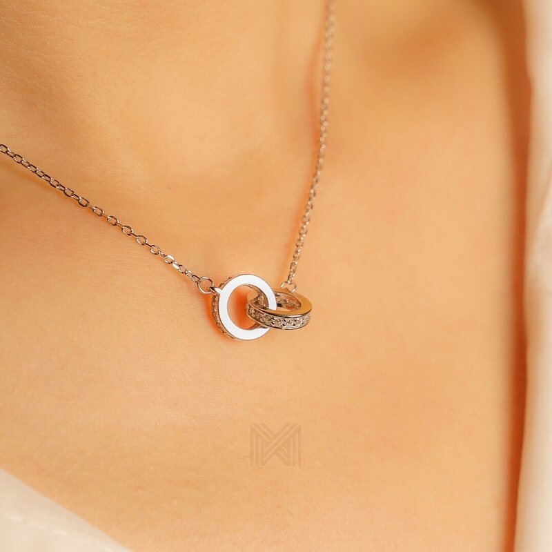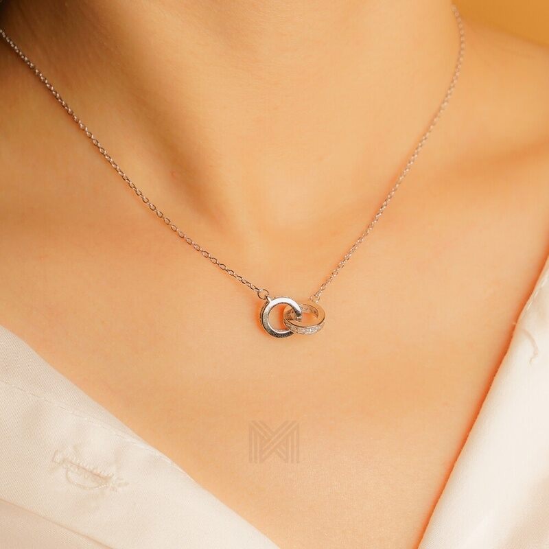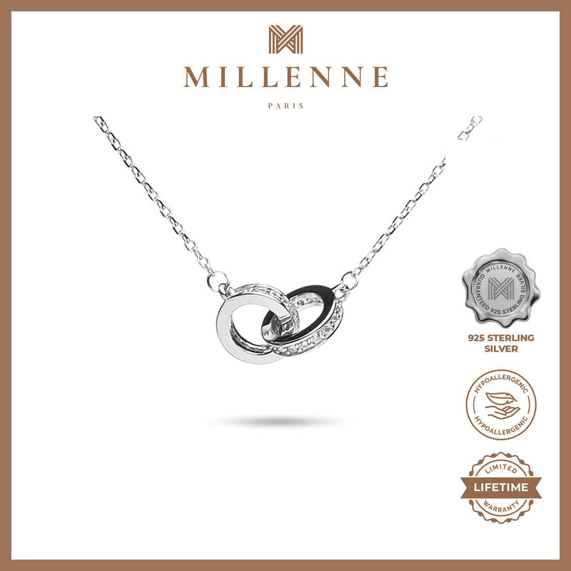 MILLENNE Millennia 2000 Forever Studded Cubic Zirconia White Gold Necklace with 925 Sterling Silver