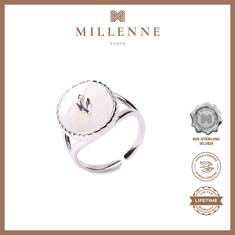 MILLENNE Millennia 2000 Mother of Pearls Victorian Bold White Gold Ring with 925 Sterling Silver