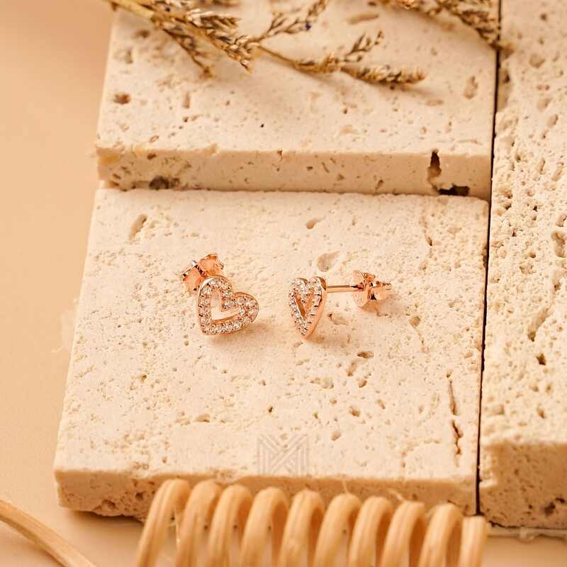 MILLENNE Millennia 2000 Open Sparkling Heart Stud Cubic Zirconia Rose Gold Stud Earrings with 925 Sterling Silver