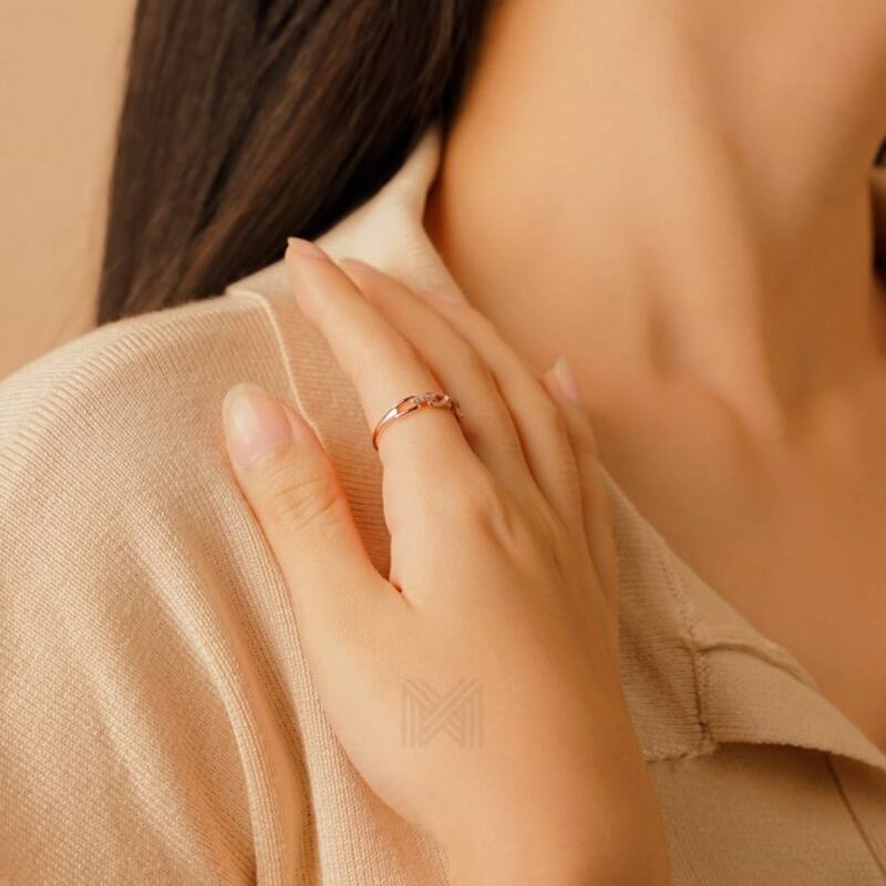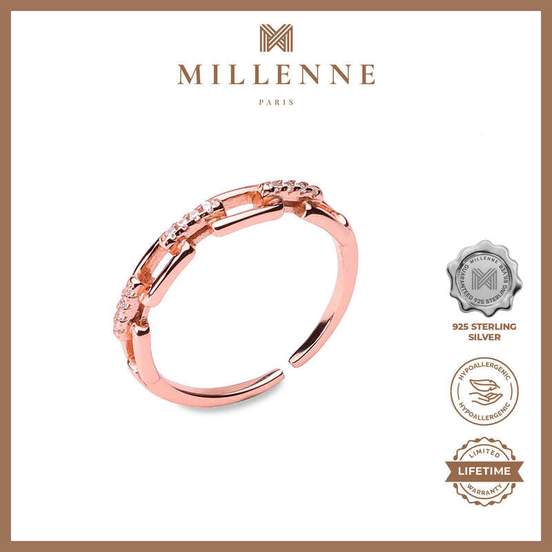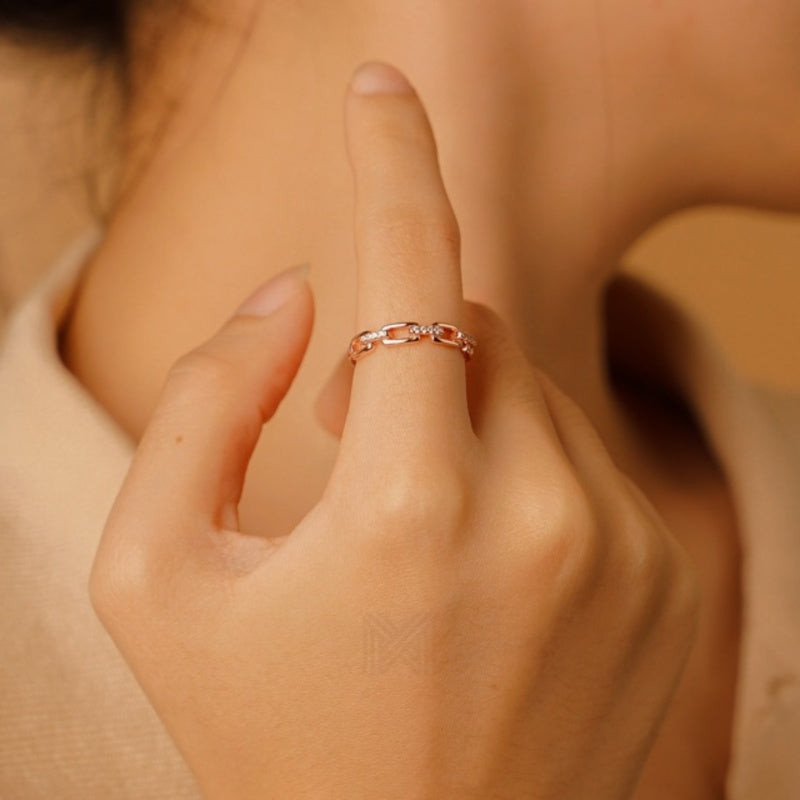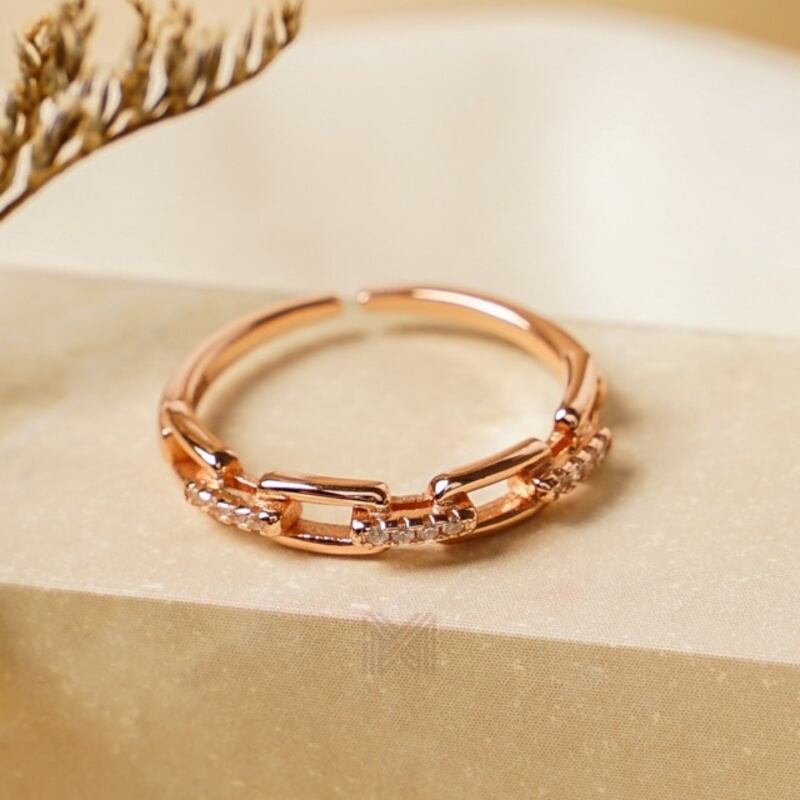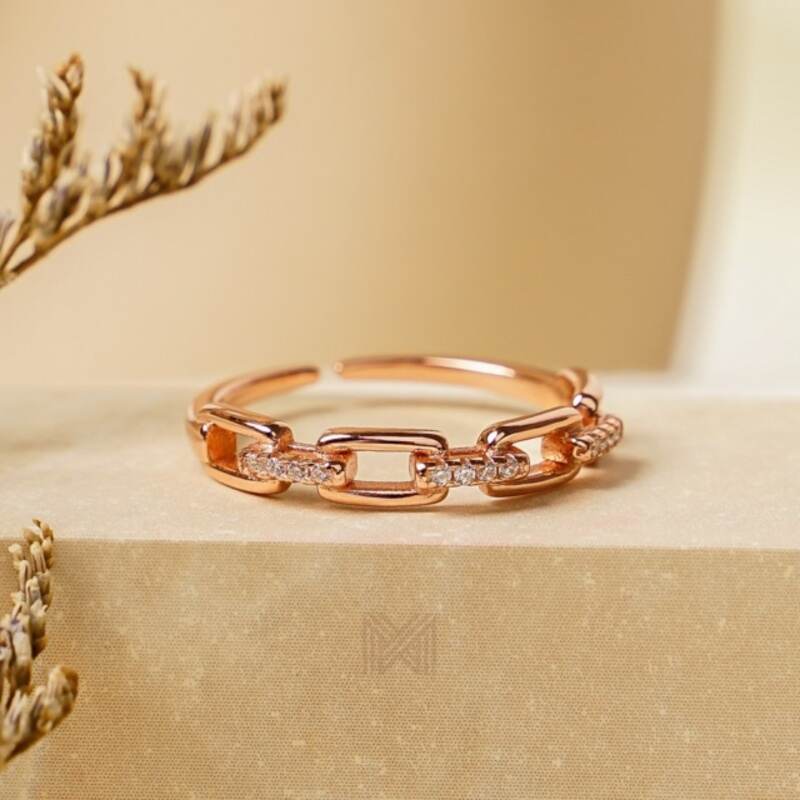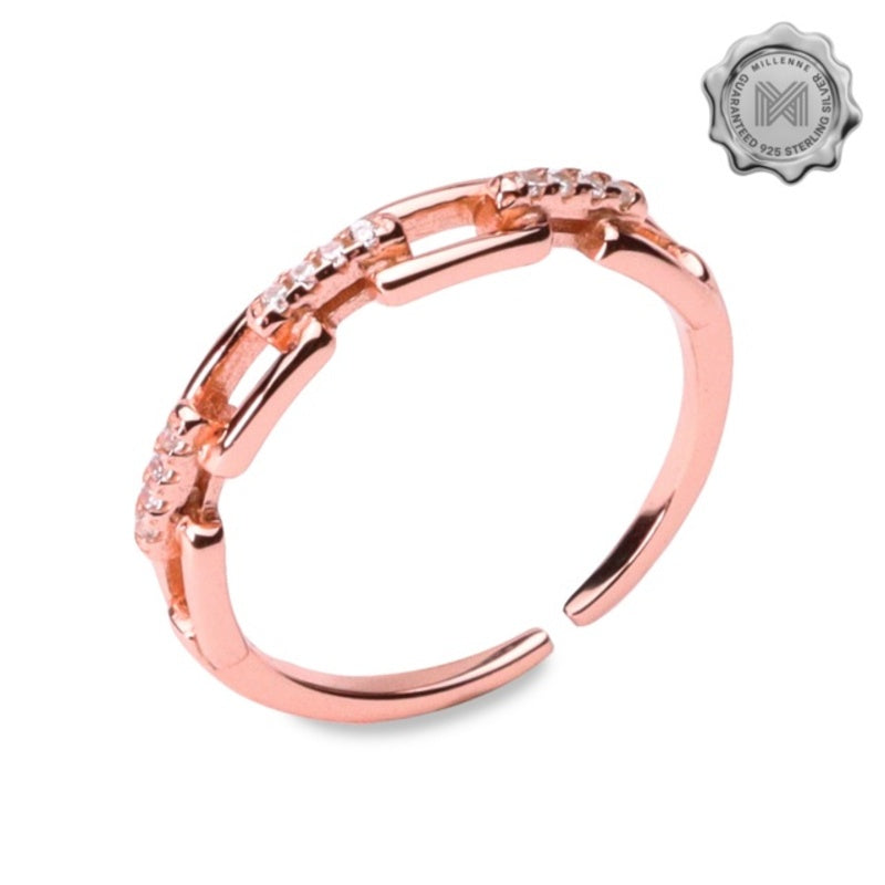 MILLENNE Millennia 2000 Studded Chain Link Cubic Zirconia Rose Gold Ring with 925 Sterling Silver
