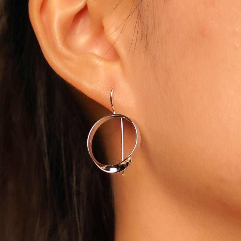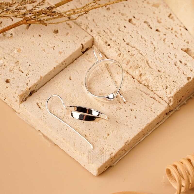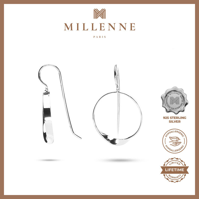 MILLENNE Minimal Circle Arched Silver Hook Earrings with 925 Sterling Silver