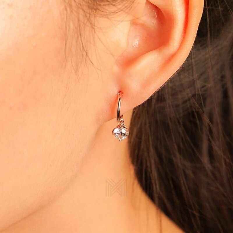 MILLENNE Minimal Square Dangling On Cubic Zirconia Rose Gold Hoop Earrings with 925 Sterling Silver