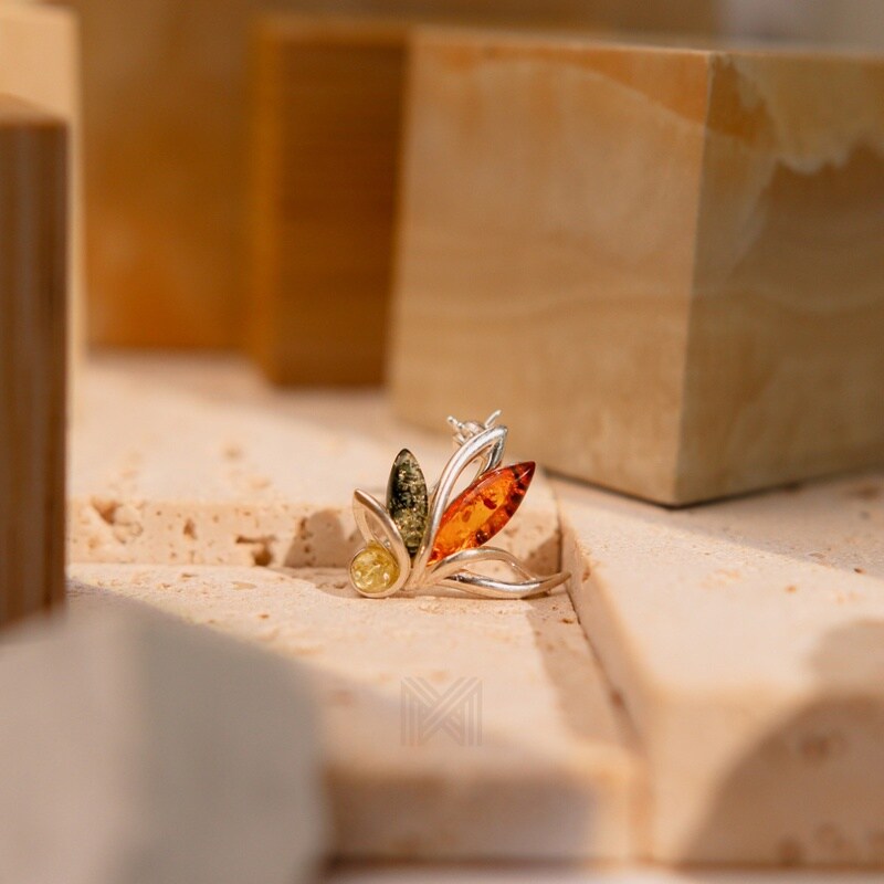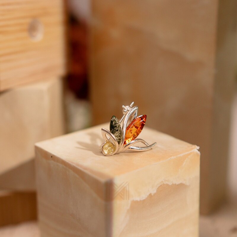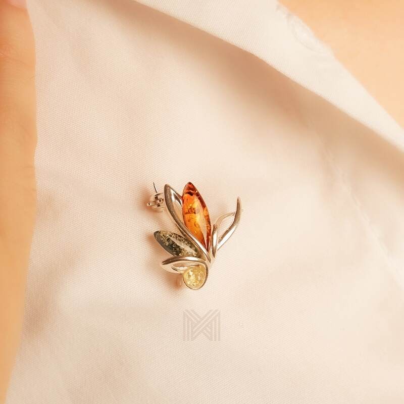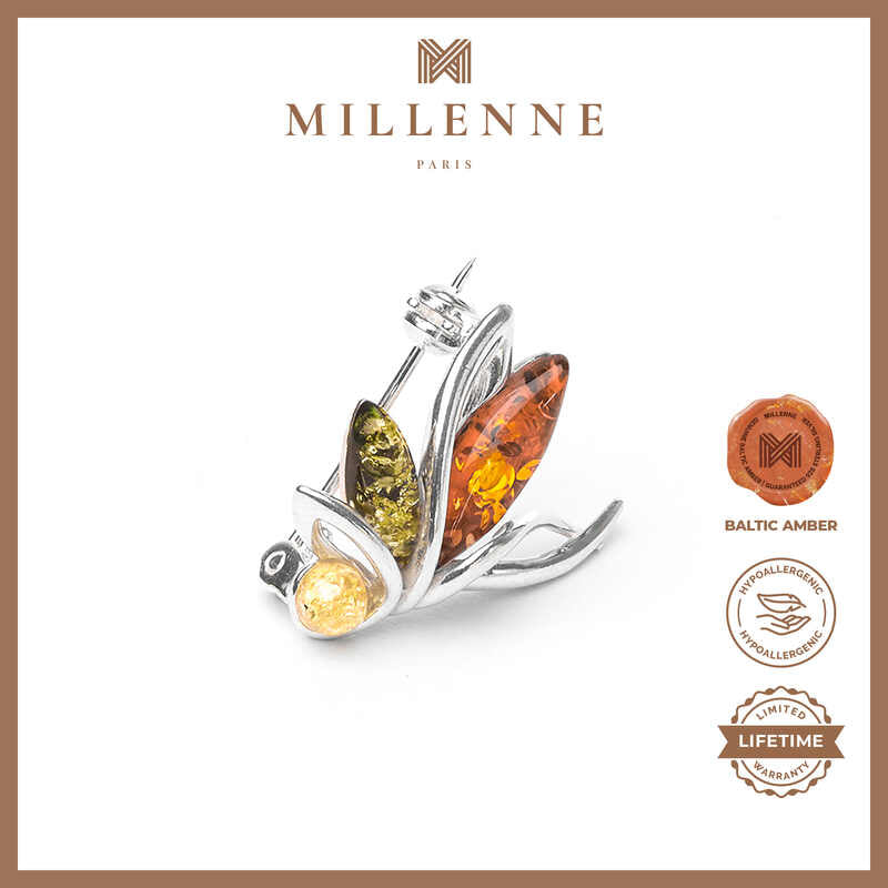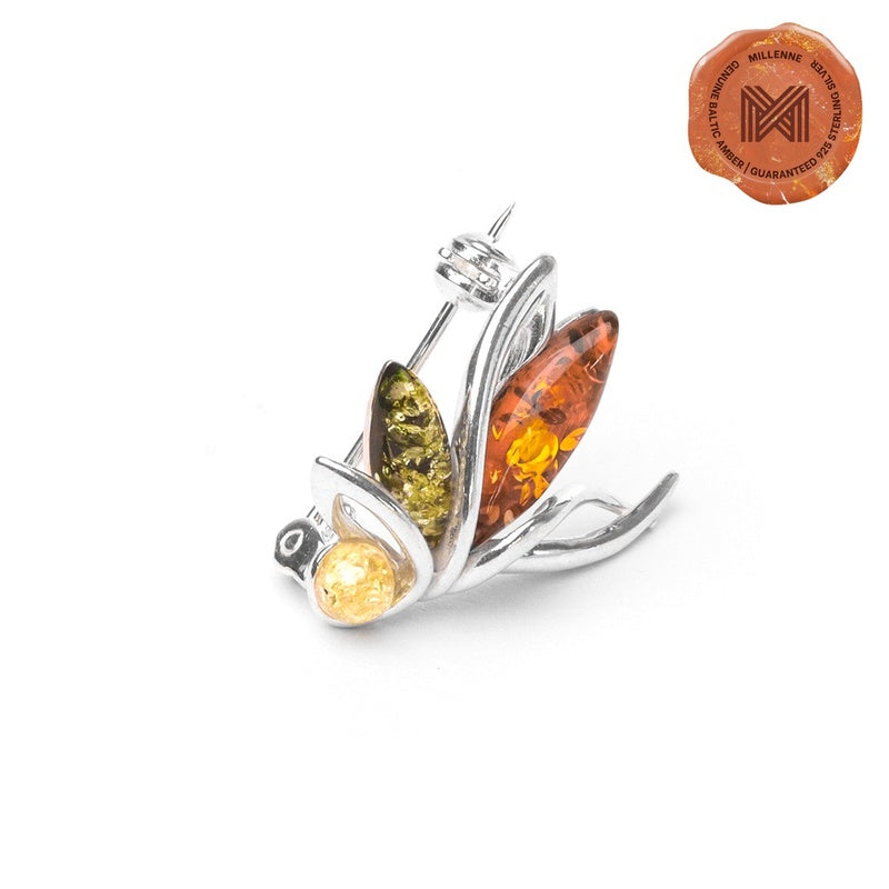 MILLENNE Multifaceted Baltic Amber Fairy Silver Brooch with 925 Sterling Silver
