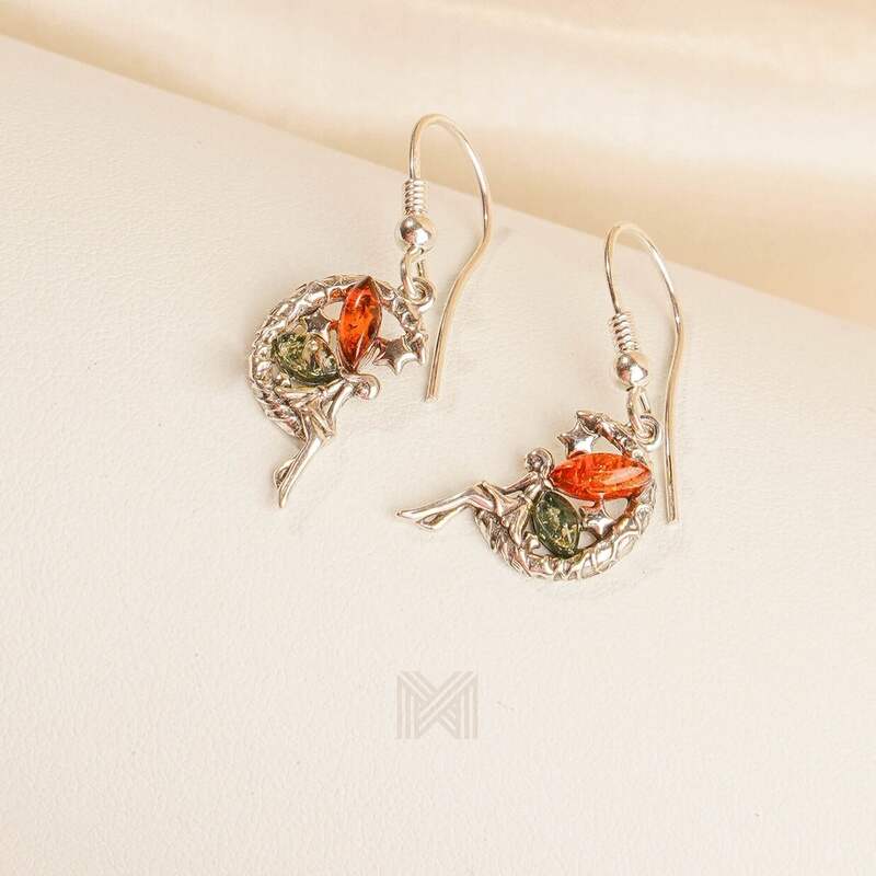 MILLENNE Multifaceted Baltic Amber Fairy Silver Hook Earrings with 925 Sterling Silver