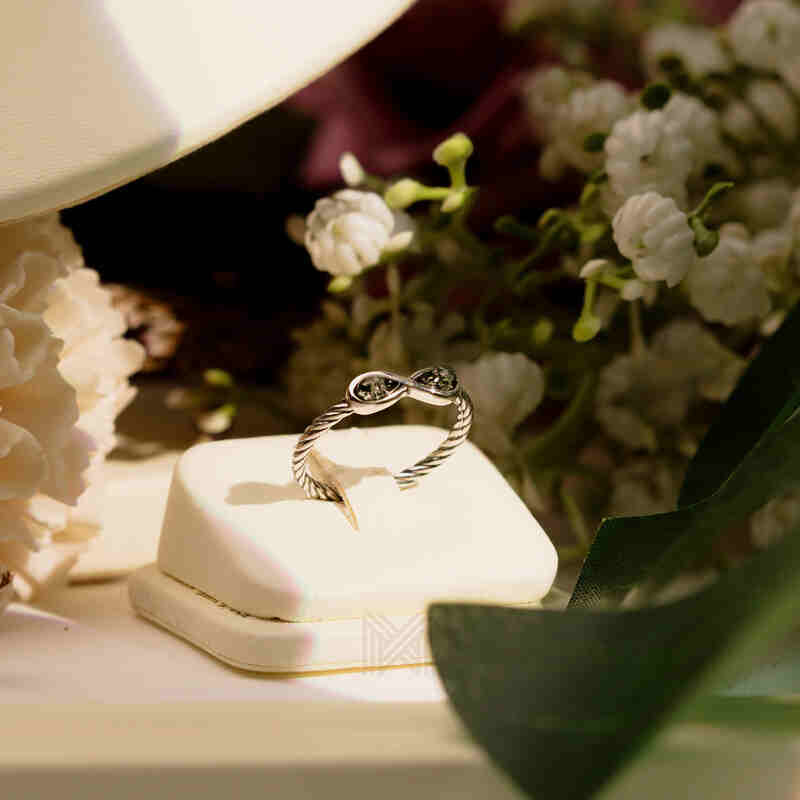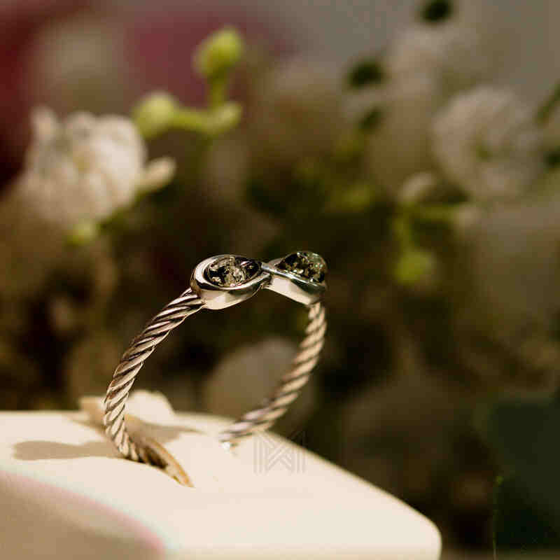 MILLENNE Multifaceted Baltic Amber Green Infinity Silver Ring with 925 Sterling Silver