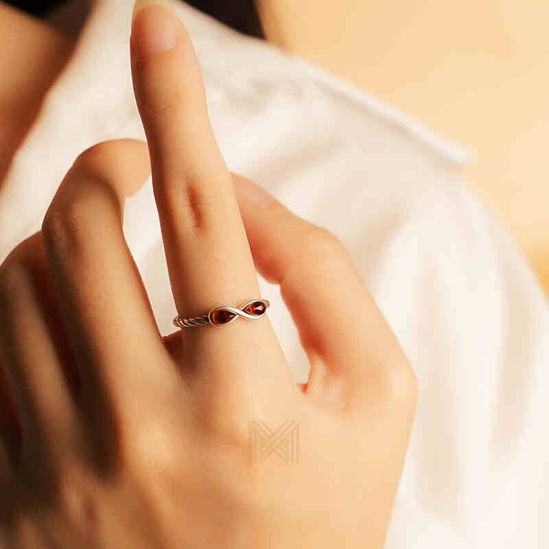 MILLENNE Multifaceted Baltic Amber Infinity Silver Ring with 925 Sterling Silver
