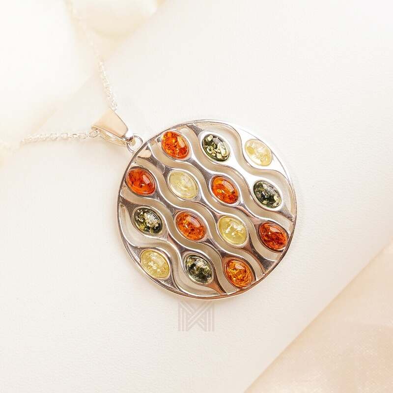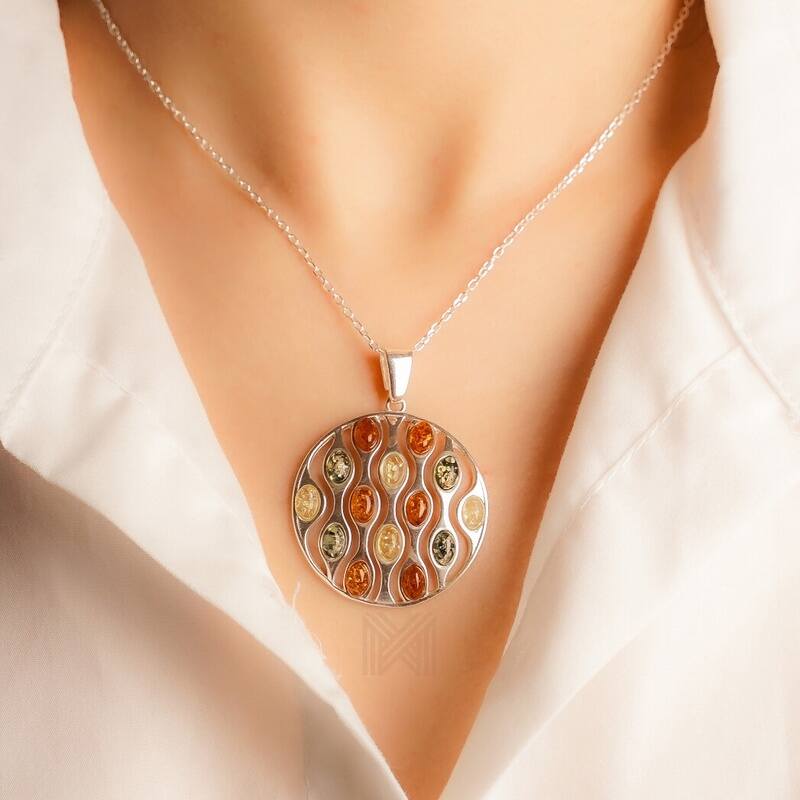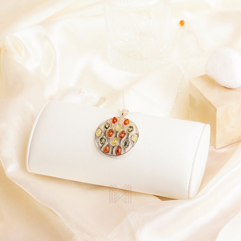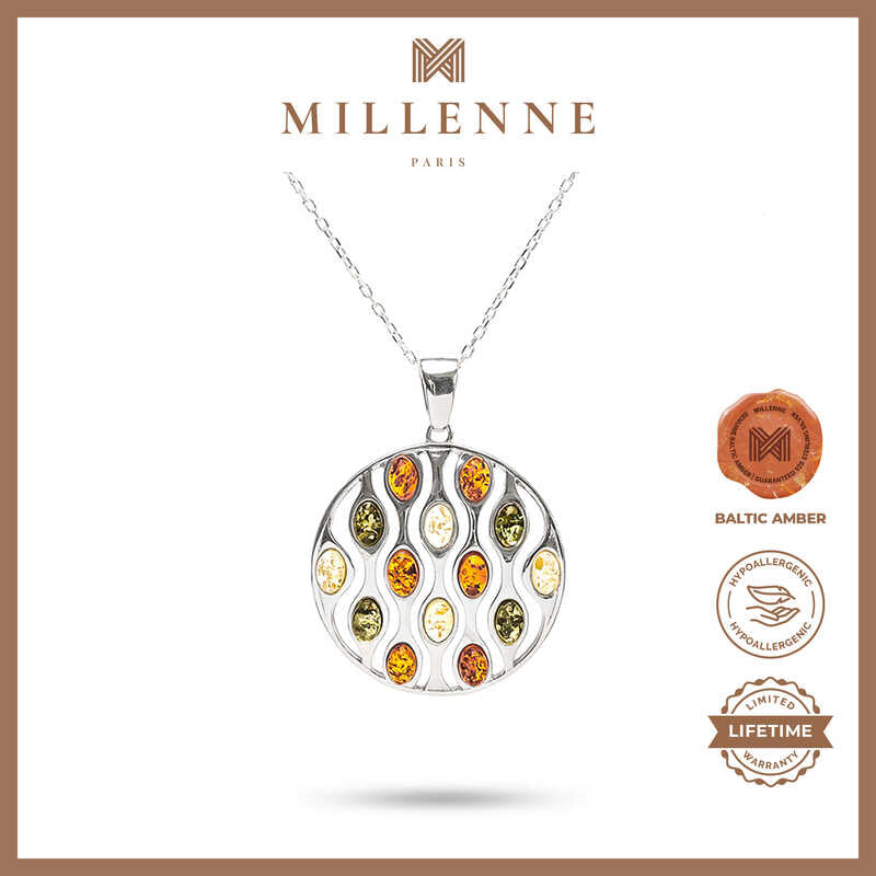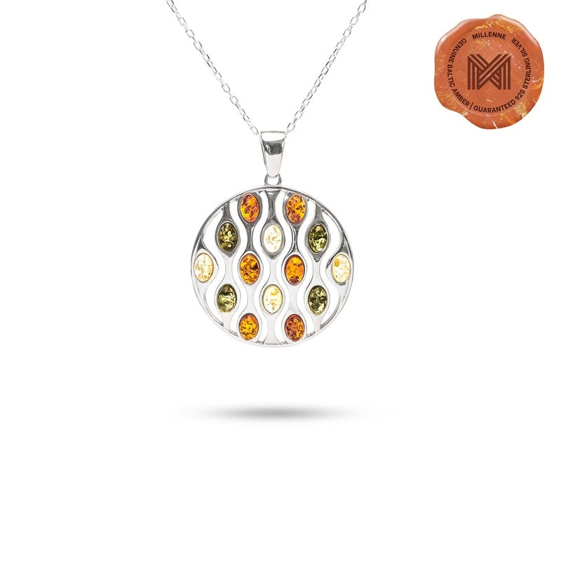 MILLENNE Multifaceted Baltic Amber Lotus Stem Silver Pendant with 925 Sterling Silver