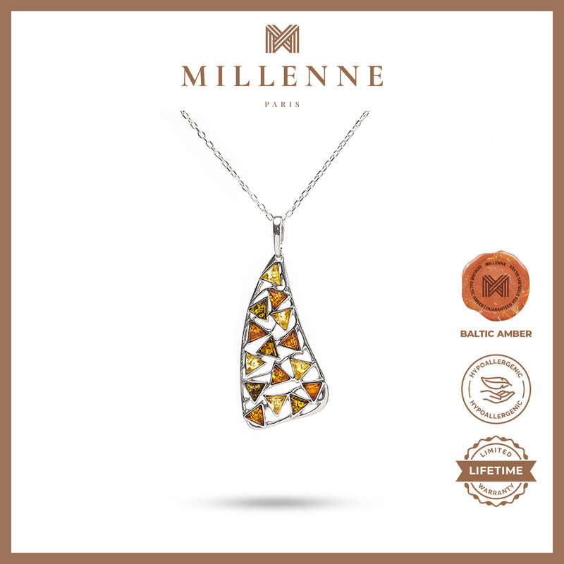 MILLENNE Multifaceted Baltic Amber Mulitple Studded Triangular Silver Pendant with 925 Sterling Silver