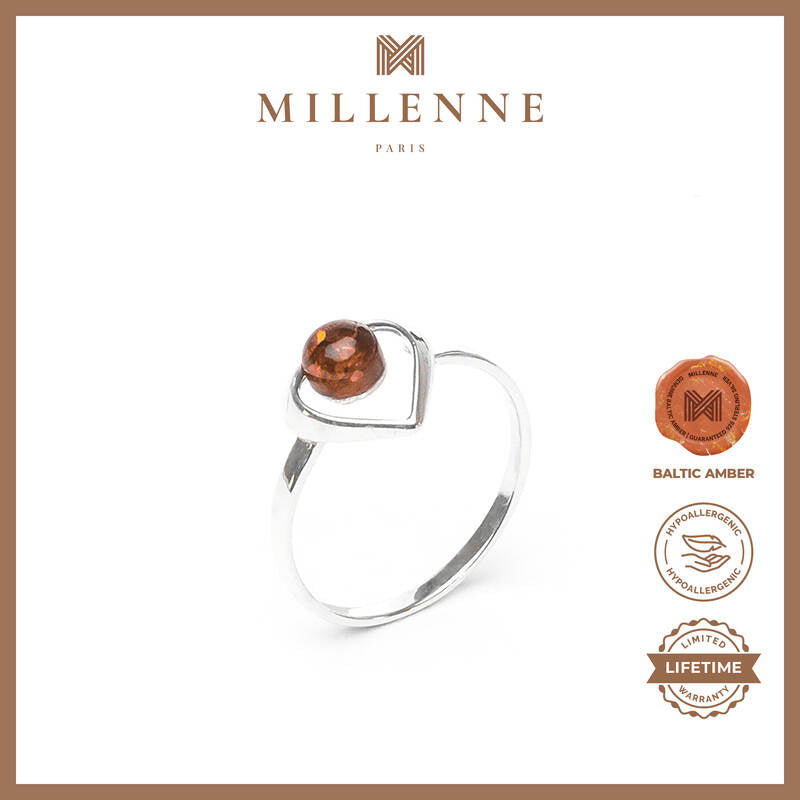 MILLENNE Multifaceted Baltic Amber Pear Enclosed Bead Silver Ring with 925 Sterling Silver